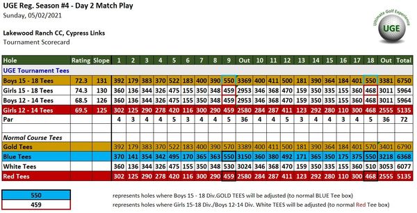 Tournament Yardages for Each Age Division shown near top